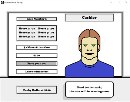 The game has Quarter Horse Racing is played in race days. Each day the player has the chance to place wagers on seven races, 6 preliminary races and a final Trifecta. The demo allows for all the same functionality as the full version, but the player only has 5 race days allotted.