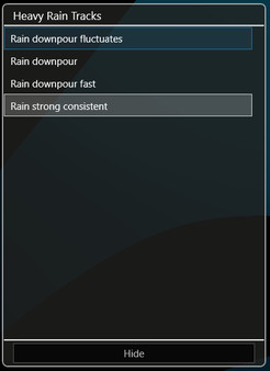 Select one of several rain and thunder combinations, (Light Rain, Heavy Rain, Thunder, Thunder and Rain, Heavy Thunder and Rain).