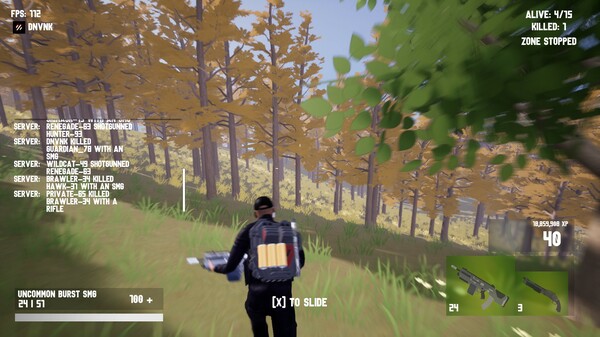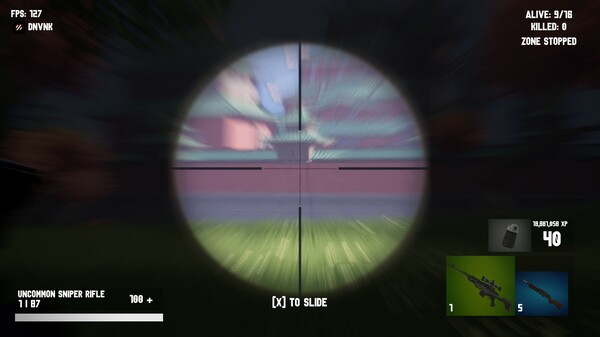 Loot a variety of weapons, stay inside the zone, and fight your way to victory. Matches last 6-9 minutes, with continuous lobbies so you can keep playing with minimal wait. You can also use the in-game text chat to talk with friends or other players.