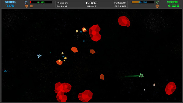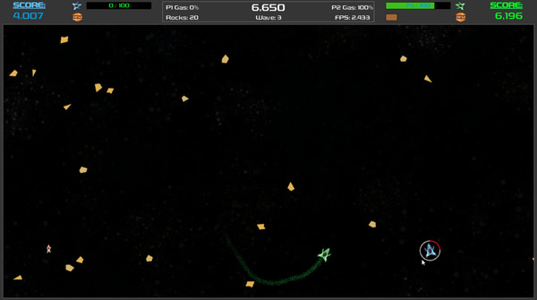 It's a given that every hero has his foes, and Rock 'N Roll G.E.O.S. Wars offers your the opportunity to battle a friend locally at your PC or through Steam via remote play with over a dozen different versus modes! Options will allow you to choose exactly how your Player VS Player battles will be played out. Do you want asteroids? Will the asteroids reflect your bullets or be destroyed by your bullets? Will the main objective be to simply shoot your opponent directly or to reflect bullets into him off of asteroids or border walls? Maybe you'd rather face your opponent instead in a true test of heroism to show the entire human population which one of you can best save the Earth? G,E.O.S. gems are the Galactic Emeralds of Sacrifice that will have to be earned, captured, and perhaps even stolen from your opponent in a wild space battle to prove you're the better space fighter in "G.E.O.S. Wars"!