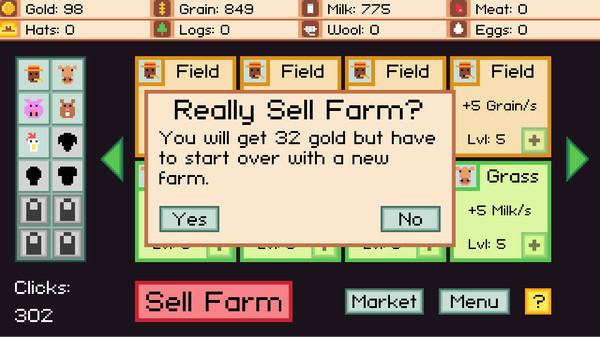 Casual farming simulator with unique, flexible gameplay. Autoclicker is built-in and free. Gather resources, upgrade critters and buildings, sell your farm when you want a bigger one and never stop expanding.
