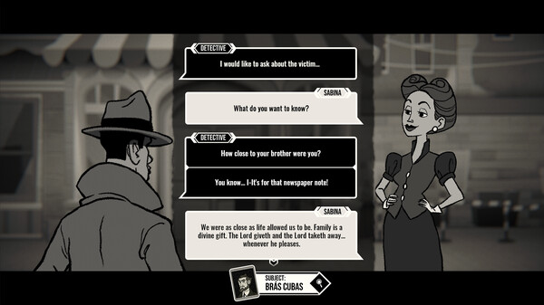 The game has Hired by Brás Cubas, an influential entrepreneur of twentieth century's Rio de Janeiro, you must find the culprit behind his own death. Even from beyond, Brás won't let you move on until you solve the case. Interrogate suspects, and uncover their motives. Delve into this imaginary take on Rio, gather clues, and find testimonies to unravel this mystery.