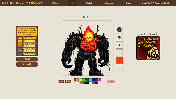 A monster's tier is determined by how long you spend drawing it. You start out with just the default palette, but unlock more as you play the game!