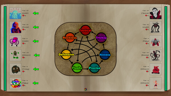 Tagteam wisely to take advantage of type vulnerabilities and each monster tier's unique moveset! Succesfully predicting your opponent's moves and creating favorable matchups will help ensure you leave the battlefield with an extra monster in your collection and epic loot in your inventory.