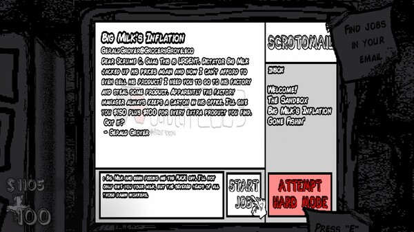 Using the state of the art 'computer' and electronic mail, you can discover and perform lethal jobs against the big corporate overlords of Hell, Wyoming. Destroy property, kill hostile workers, and cause as much destruction as possible.