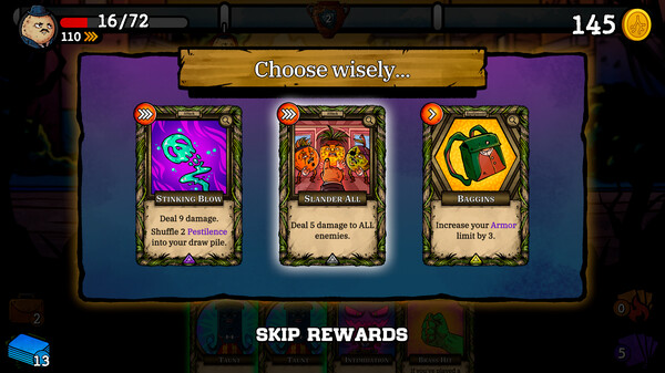 You will have different cards to build your deck depending on the character you choose to play! Each time you win a battle, you will be rewarded with a choice of a card between three.