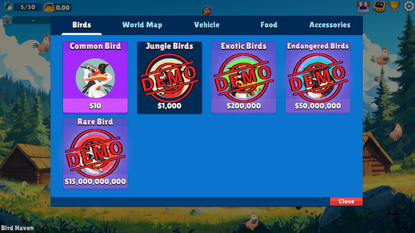 In this limited demo, explore one sanctuary and interact with a single card for bird purchases, featuring a delightful bird species exclusive to this card. With simplified mechanics, this demo offers a glimpse of the serene, bird-filled world awaiting in the full version.