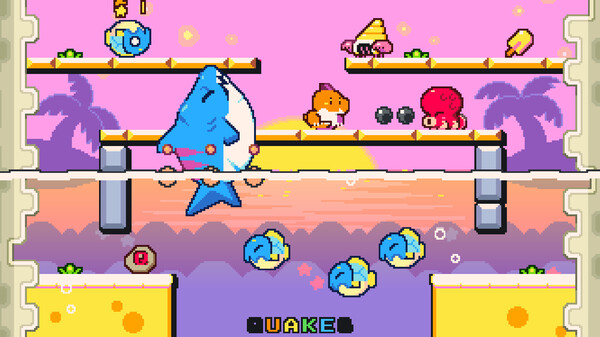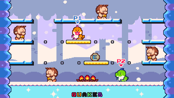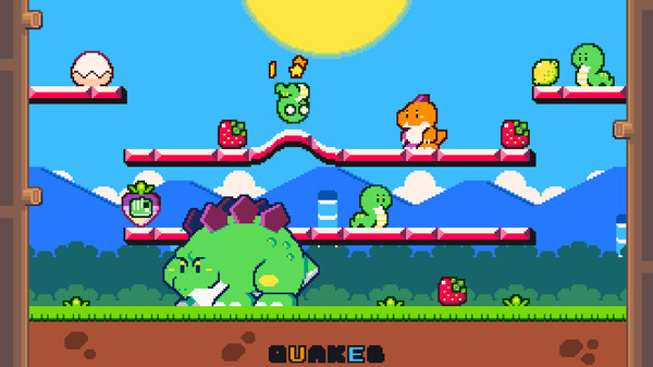 Dino Quake is a platformer arcade game inspired by the great classics you loved to play! Play as a dinosaur and hit the ground to create quakes that stun your enemies, then hit them up to set off epic avalanches. Play solo or team up with a friend in an epic local co-op mode for twice the quakes.
