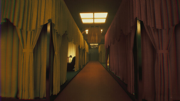 Lost in an eerie labyrinth of dated carpet and walls coated in lead paint, you feel the weight of an unknown purpose. The hum of flickering lights, swaths of heavy curtains, and faded furniture from a long ago decade evokes nostalgia laced with dread. Is something waiting around the corner? Or are you merely slipping deeper into the depths of a psychological mire? Find out—if you dare.