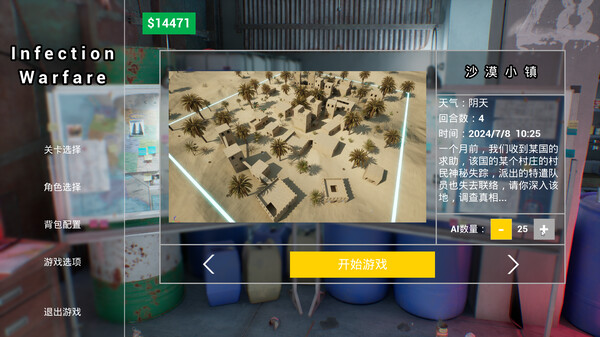 Before each game starts, you can use in-game coins to purchase human soldiers, zombies, weapons, and freely choose your character and weapon configuration. The trial version includes two unique maps, with randomly generated turns, weather, and time for each round, adding more unpredictable challenges. Before entering the map, you can also adjust the game difficulty by the number of AI opponents.