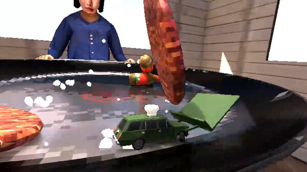 Now, the restaurant is struggling, and it’s up to you to save it. The twist? You’re the car. Whether by possession or some bizarre reanimation, you’ve become the new “chef,” taking over the kitchen – but as a small, fast-moving vehicle. Your task is to drive around the restaurant, honking at customers to get their orders and then literally cooking by rolling over a giant frying pan in the middle of the restaurant.
