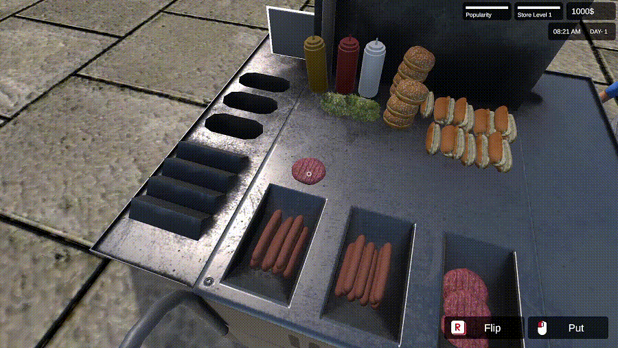 Welcome to the bustling world of street food! Grill hot dogs, sizzle hamburgers, and serve delicious snacks to hungry customers. Find best spot in the city, perfect your recipes, manage your stand and watch your reputation grow!