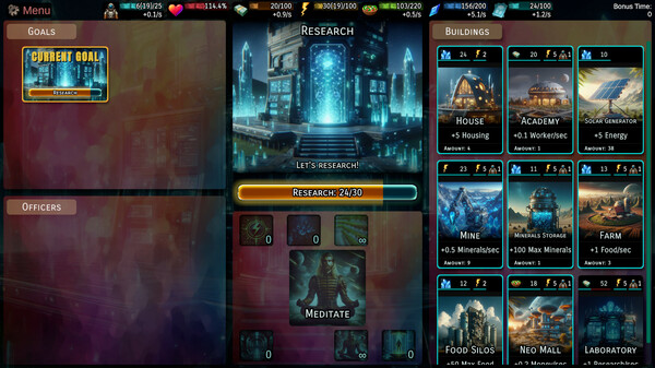 My goal is to create an idle game which combines colony management and story telling in an interesting scifi setting.