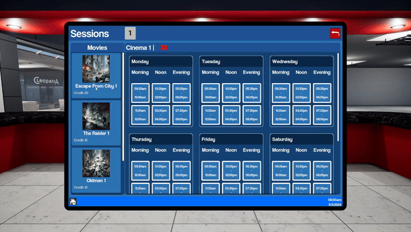 License films and set the playback order of showtimes. The film scheduling system, the most detailed system in the game, offers you many opportunities to develop strategies. You can either set high prices and show popular films or sell to more people at a lower price. You can try many combinations!
