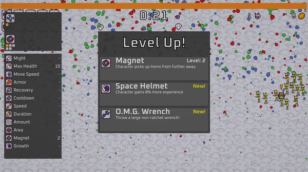 DOTS Survivors is a casual action game where you play as an astronaut exploring the cosmos fending off hostile aliens along the way! As you progress through each run you can choose from a selection of futuristic weapons that can be leveled up to increase power!