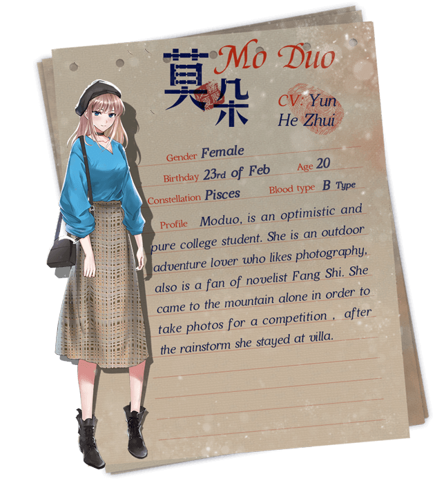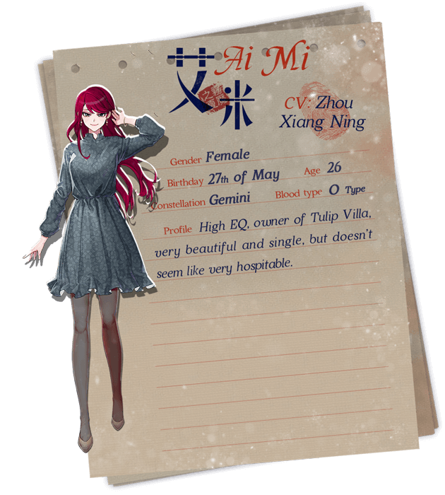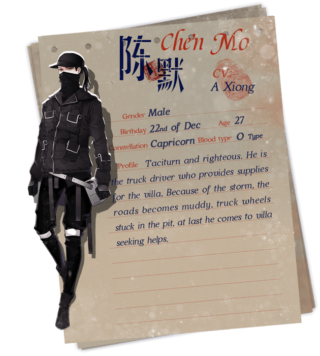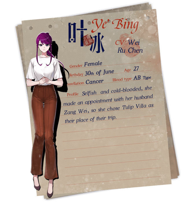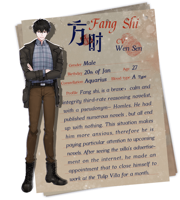 You are a third-rate novelist, with a pseudonym— Holmes, but the other side of the cheap pseudonym is your serious and fervent heart for reasoning. In this murderous villa, you will be the detective role and unremittingly pursue the truth. Find out the real murderer and disclose the truth.