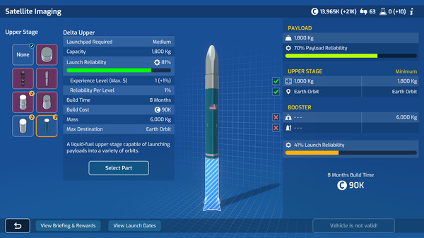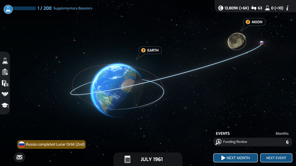 Enter into diplomatic partnerships with other agencies to share the rewards of space exploration, or risk going it alone to gain greater prestige. Construct the ideal rocket from historically-inspired vehicle parts. Hire contractors to construct vehicles and use their unique benefits to gain a key edge over your competitors.