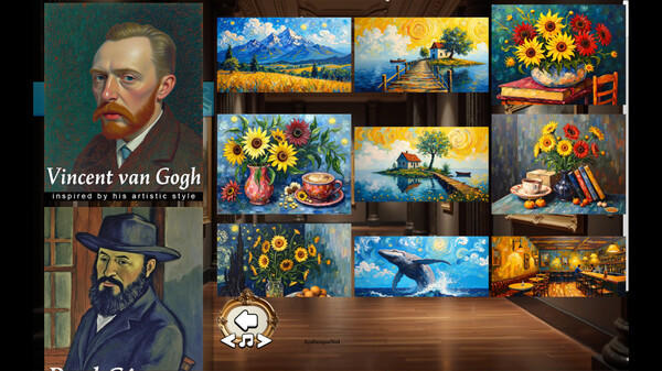 Experience the brilliant golden hues of sunflowers and the swirling nebulae of starry nights