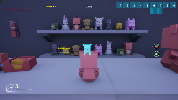 Try to blend in with the environment by turning into an object in the level. Taunt your opponents to gain score, blow yourself up to enact revenge, and flash them to run away in a pinch!
