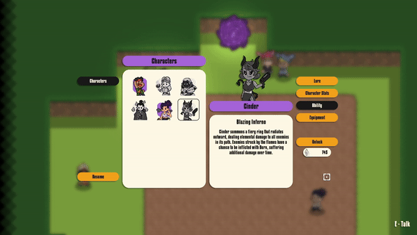 Each of the unlockable characters possesses a unique active skill and set of statistics meaning that choice of character directly influences the dynamics of the gameplay. Each character embodies a different archetype, ensuring that every player, regardless of their preferred playstyle, will find something right for them.
