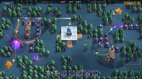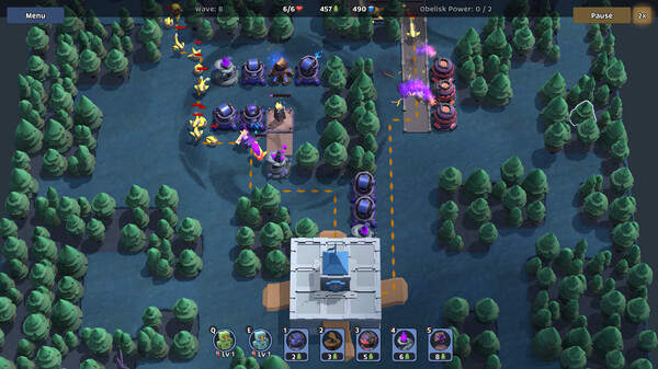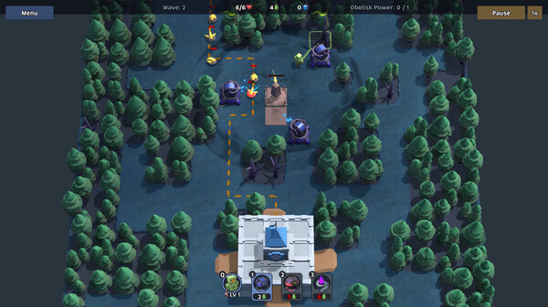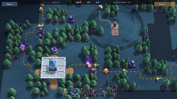 Defend the Spires with 5 unique towers, each with two unique upgrade paths that increase the tower's potency in different ways. Upgrading a tower will require a rare resource. A Townsfolk legend suggests "the forests prize the curious".