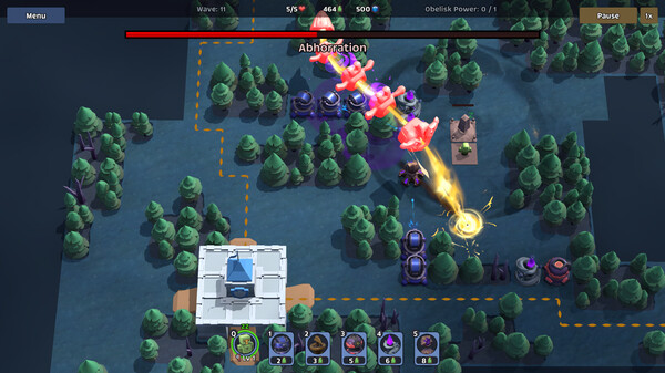 Monsters from another plane are attacking the nation, and your position among the Noble School of mages is to defend the people of the land from invasion. At your command the citizens of the area will aid by clearing the forests, giving you the space and resources required to establish a network of towers to keep them all safe. Command the gatherers carefully, they may create a path that leaves the Spires vulnerable.