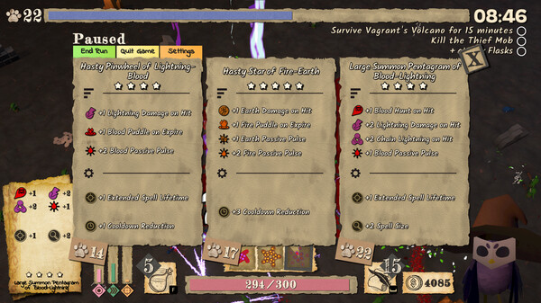 Fight for survival as you battle massive hordes of enemies. Wield powerful spells that you can mutate and evolve to ludicrous strength. Customize your character's stats, elemental affinities, and make upgrades to become the ultimate spell-slinging force of destruction.