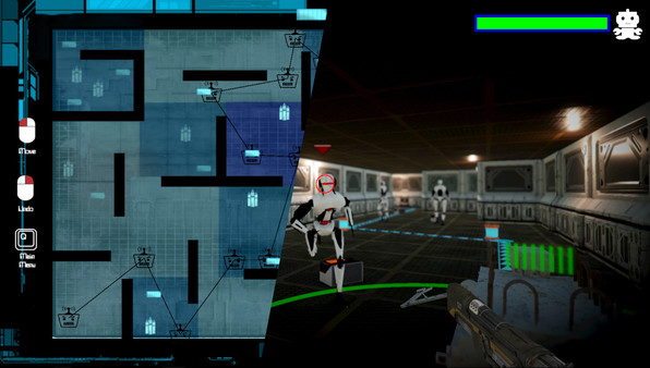 The game has Introducing the first-ever strategic escort shooter where you plan your path before grabbing your gun! Gameplay is split in two phases: planning and execution. When planning, you map your route on a 2D map while using battery power as you plot your path. In the action phase, you race down winding corridors and gun down rogue robots that impede your path while protecting your charge from harm. The completion of each level is dependent on the cooperation of a robot duo as one provides the power while the other provides the protection.