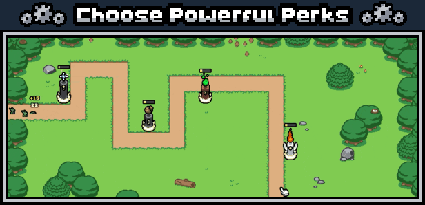 Choose between powerful perks, that have the potential to completely change your strategy. Meteors falling from the sky, the chance to reposition all your towers or maybe exchange exchange gold for experience points? Pick the right upgrades, that synergize with your tower composition or deal with a weakness against a certain type of enemies.