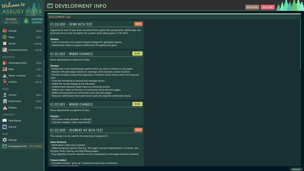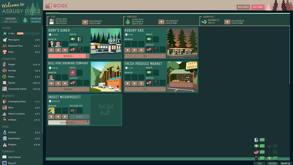 Asbury Pines is a narrative twist in the incremental genre. Combine and synthesize the work of Abury Pines townfolk (the Pinies) to unveil a murder mystery across the small town’s history – from the late stone age to the deep future. Immersive writing and image-rich worldbuilding pair with idle/incremental gameplay. As you unlock an array of characters, artifacts and places from one era to the next, combine them and their unique stats in different ways to build and link resource production economies… across centuries. What emerges is a sprawling factory of working lives that unveils a story embedded in the flow of time.