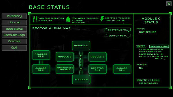 The game has You find yourself alone on a remote research outpost in the Polaris system. Something has gone terribly wrong. Much of the base is lacking power and your co-workers are mysteriously missing. Your resources are dwindling, so you'll need to secure more food, water, and power, but this involves venturing away from the security of your home base. There are deadly threats lurking in this outpost and it will take all of your cunning to keep from becoming another victim. Equipped with various items to track, deter, and trick your adversaries, there is a chance you can outwit your opponents. However, you'll need to keep a close eye on your stats, as it's all too easy to get dehydrated or lose your sanity to the extreme stress of these circumstances.