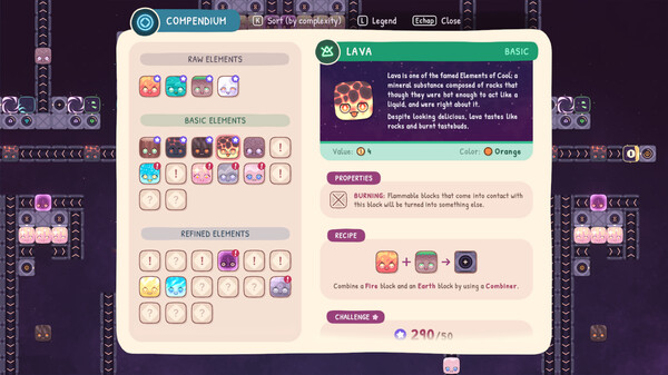 Start with an endless supply of Fire, Water, Earth and Air, and combine them into increasingly complex elements. There are dozens of elements to discover, each with their own recipes, interactions and special properties! And then there are the legendary elements, which only the best builders will be able to craft...