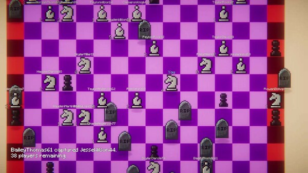 In this thrilling battle royale experience, 100 players are dropped onto a vast chessboard, each starting as a Knight with one goal: to outwit, outmaneuver, and outlast your opponents. As the clock ticks down, you'll have 30 seconds to collect as many pawns as possible, positioning yourself for supremacy when the action begins.