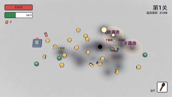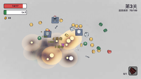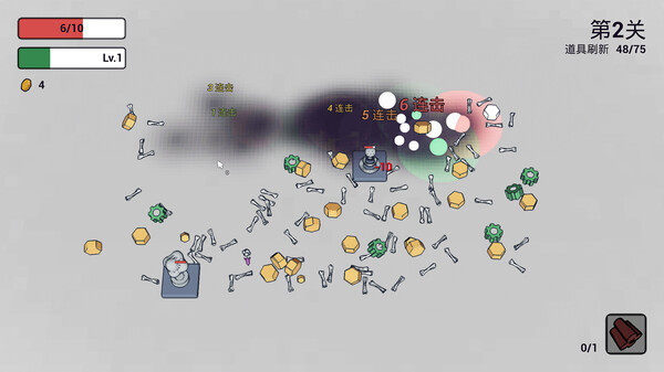 The game has This is a top-down anti survivor game that includes physics, survival, and mild ROGUE gameplay.
