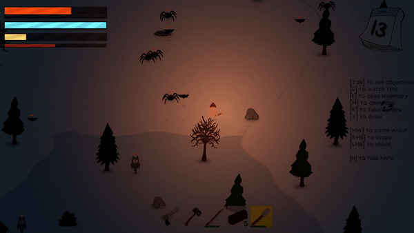 In a remote, snowbound wilderness, you're thrust into the unforgiving reality of survival. The last member of a doomed expedition, your objective is as haunting as the icy landscape around you: find and photograph the 13 fallen explorers who came before you, their bodies now scattered and frozen in time. But survival here is a delicate balance between life and death, demanding constant vigilance, resourcefulness, and grit.
