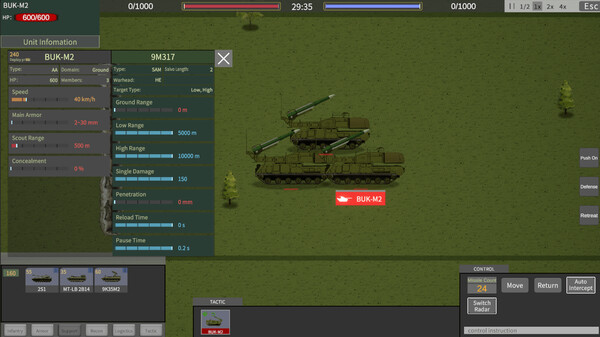 Intercept system: Units equipped with radar, including heavy air defense and fixed wings, will share data links. When facing a large number of targets, they can automatically allocate targets reasonably to intercept units, so as not to be easily defeated by saturation attacks and avoid wasting ammunition. The targets that can be intercepted include enemy fixed wings, helicopters, drones, rockets, missiles, etc. In the past, almost no RTS games could achieve this function