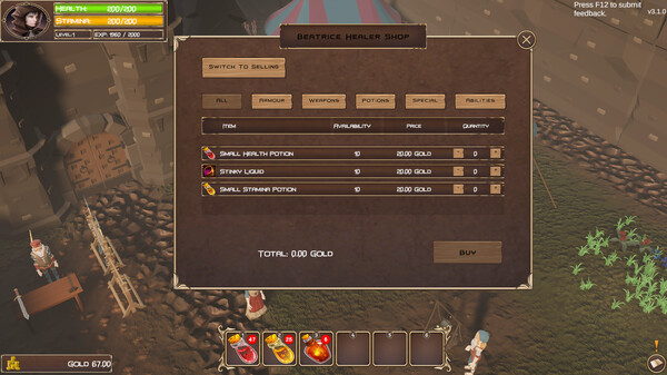 Discover various equipment types, each requiring specific skills to equip. Manage your inventory wisely, choosing which items to keep or trade. Equip different weapons to enhance your attacks and tackle stronger enemies. Find armour and shields as quest rewards or random drops, and visit shops across the kingdom to upgrade your gear.