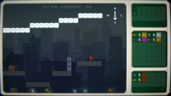 The game has Rule TV is a platform-jumping puzzle game where you can pick up rules within levels and change or generate new rules in the area on the right side. In different levels, you need to change the gravity of the scene, the objects you control, and the properties of the objects to complete the objectives. You can turn clouds into stones or make walls float.
