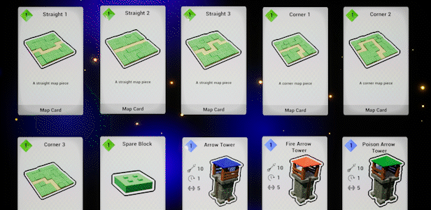 Deck Defense has over 65 cards to unlock, including over 32 towers, 10 powers, 10 spells, and 14 map pieces. Use these cards to perfect your strategy, however you’ll need to adapt to what cards are available to you.