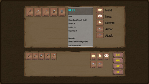 Inspired from my time playing a healbot in World of Warcraft, player will gather a group of up to 30 units and 10 spells to beat the tide of green skins. Gather gold from the defeated enemies and replace your fallen with better and more powerful units as you go up against deadlier foes.