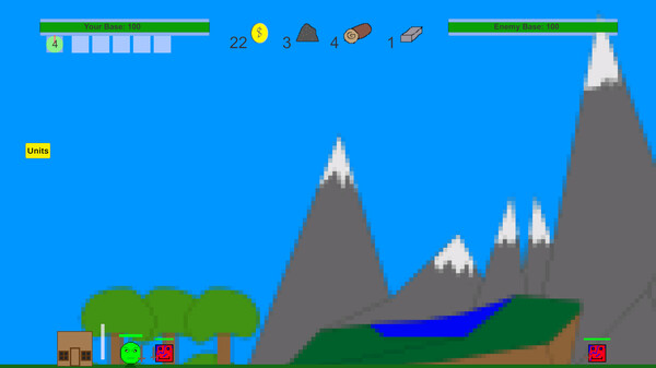 The game has Slime wars is a 2D RTS game that has base building. Get resources, build an army and attack and defeat the enemy base.