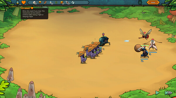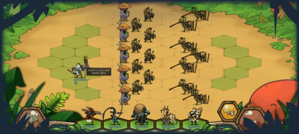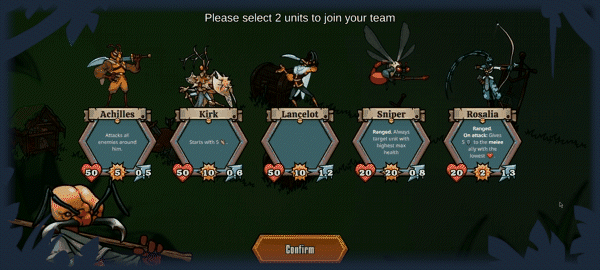 Use your strategic senses to pick the best insectoid recruits to face the fungal monstrosities! Each has their own strengths and weaknesses, and it’s up to you to make good use of them!