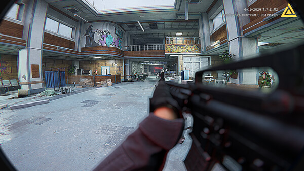 The HUD is almost entirely non existent, with the exception of the crosshair which appears only when looking at interactable items.