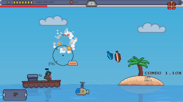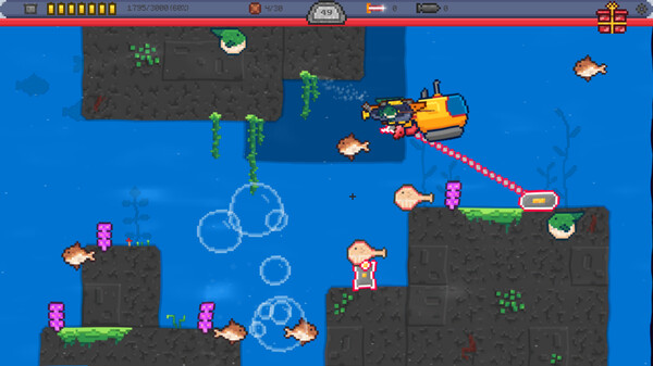 The game has Critical Fishing is a fishing game without a fishing rod. Instead you get a submarine, upgradeable guns and one very angry worm! Start out as a noob with a pistol and become a ricocheting, sawblade throwing, precision shooting, demon summoning, black hole creating, missile launching menace of a worm!