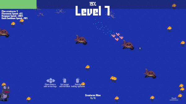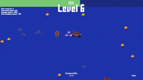 Killing enemies gives you experience, which you need to level up your swarm. As you defeat bosses, you will gain access to special upgrades that change the gameplay even more drastically. This allows you to discover different builds to overcome the challenges the sea has to offer.