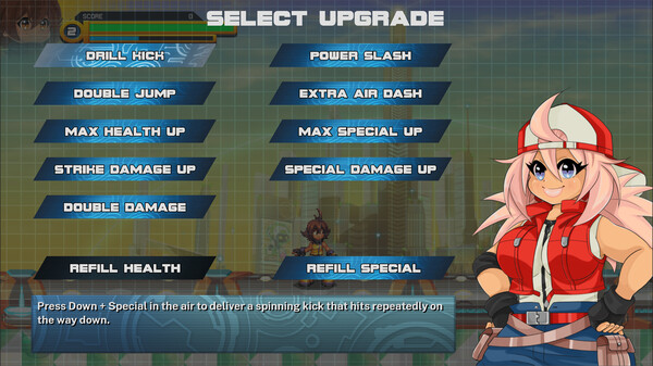 Upgradeable Skills: The game features a unique skills upgrade system. Instead of traditional XP or tokens, TimexDrifter introduces a scoring points system. The more combos you land without taking damage, the higher your score multiplier. Use your accumulated points to buy new skills, boost your damage, or even heal at in-stage "Upgrade Terminals."