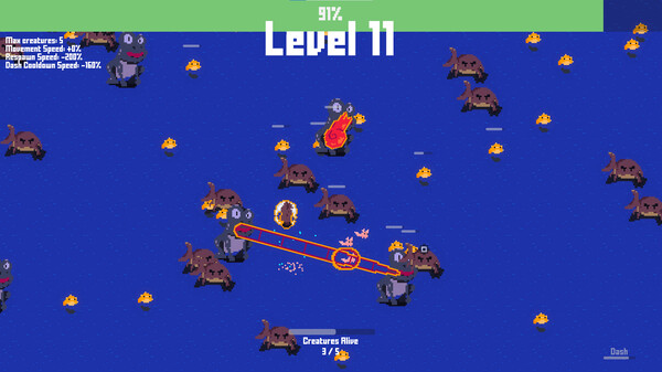 Killing enemies gives you experience, which you need to level up your swarm. As you defeat bosses, you will gain access to special upgrades that change the gameplay even more drastically. This allows you to discover different builds to overcome the challenges the sea has to offer.