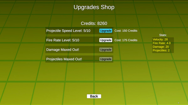 Between levels upgrade your weapon systems using credits acquired from destroyed enemies.