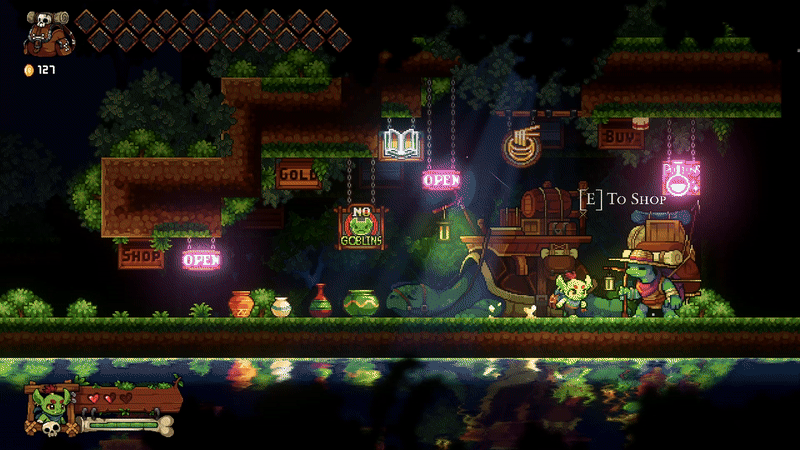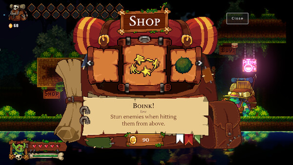 Strategically manage your gold to purchase upgrades from the shop, for effects such as healing, increased movement speed, extra jumps, and even new abilities! Unlock secret items and content for every new game you play.