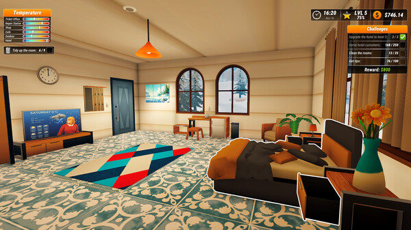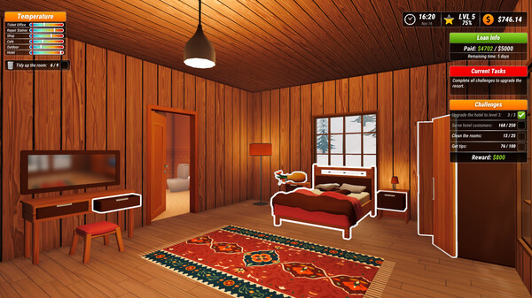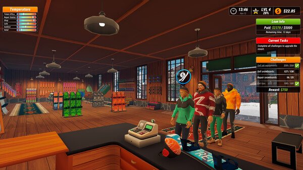 Step into the world of Snow Resort Simulator. Tackle daily responsibilities: upgrade facilities, maintain a cozy resort, satisfy guests with freshly cooked meals and drinks, and keep your inventory fully stocked. Be prepared for the challenges that come with winter.
